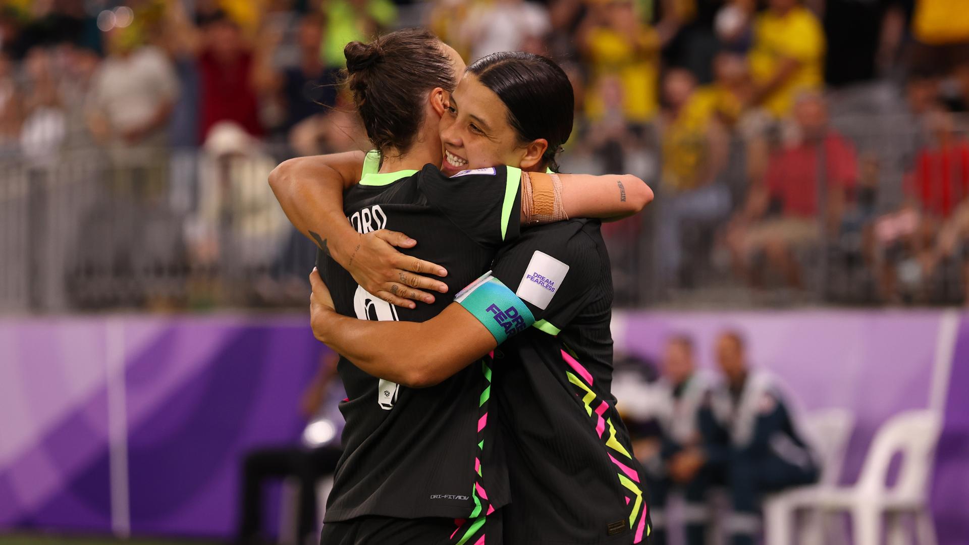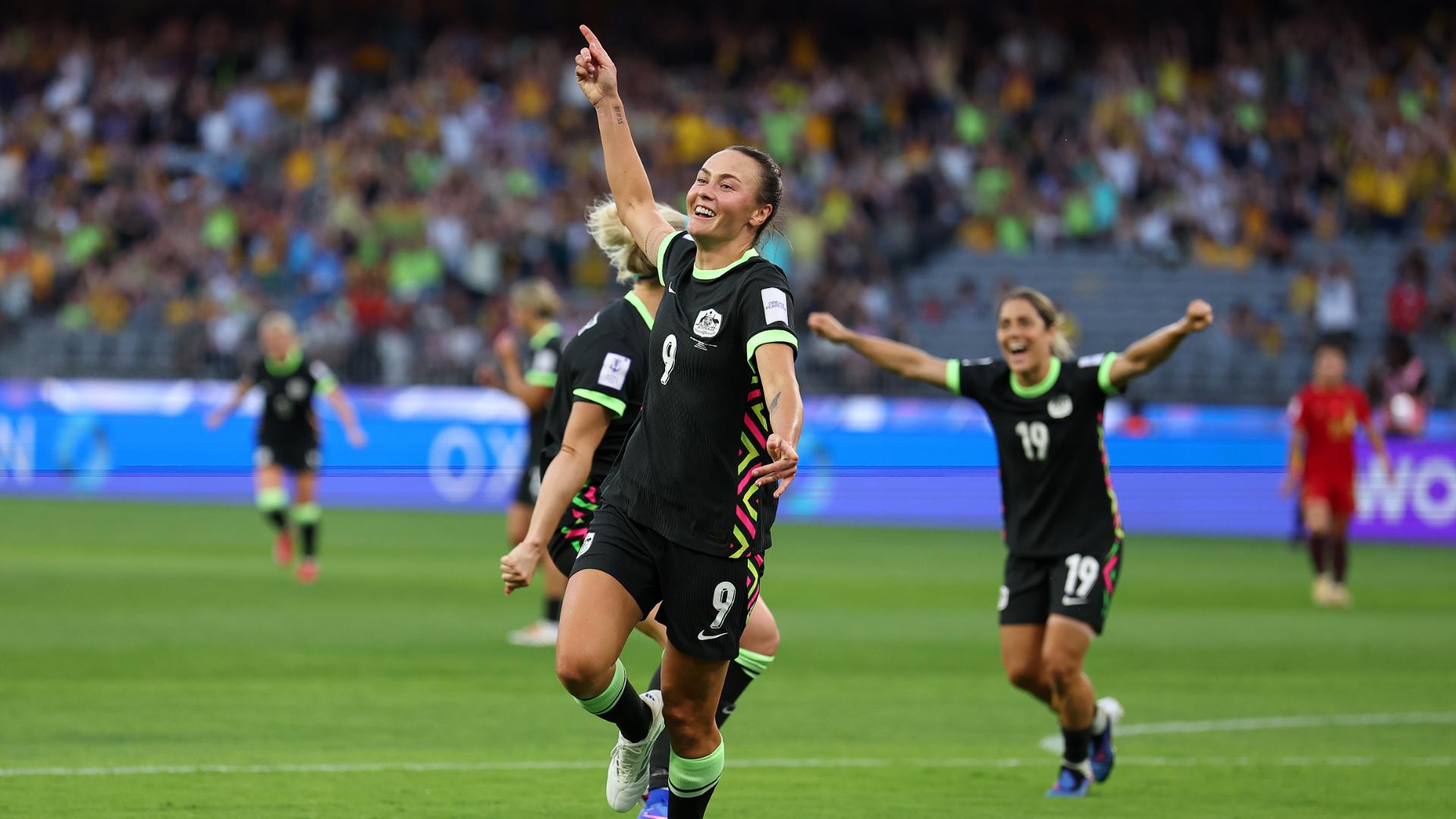 Brilliant teamwork from the Matildas sees Mary Fowler thread a perfect pass to Caitlin Foord, who finishes to give the hosts an early lead.