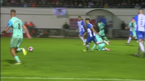 Abdón Prats scores his third goal of the match against CD Boiro.