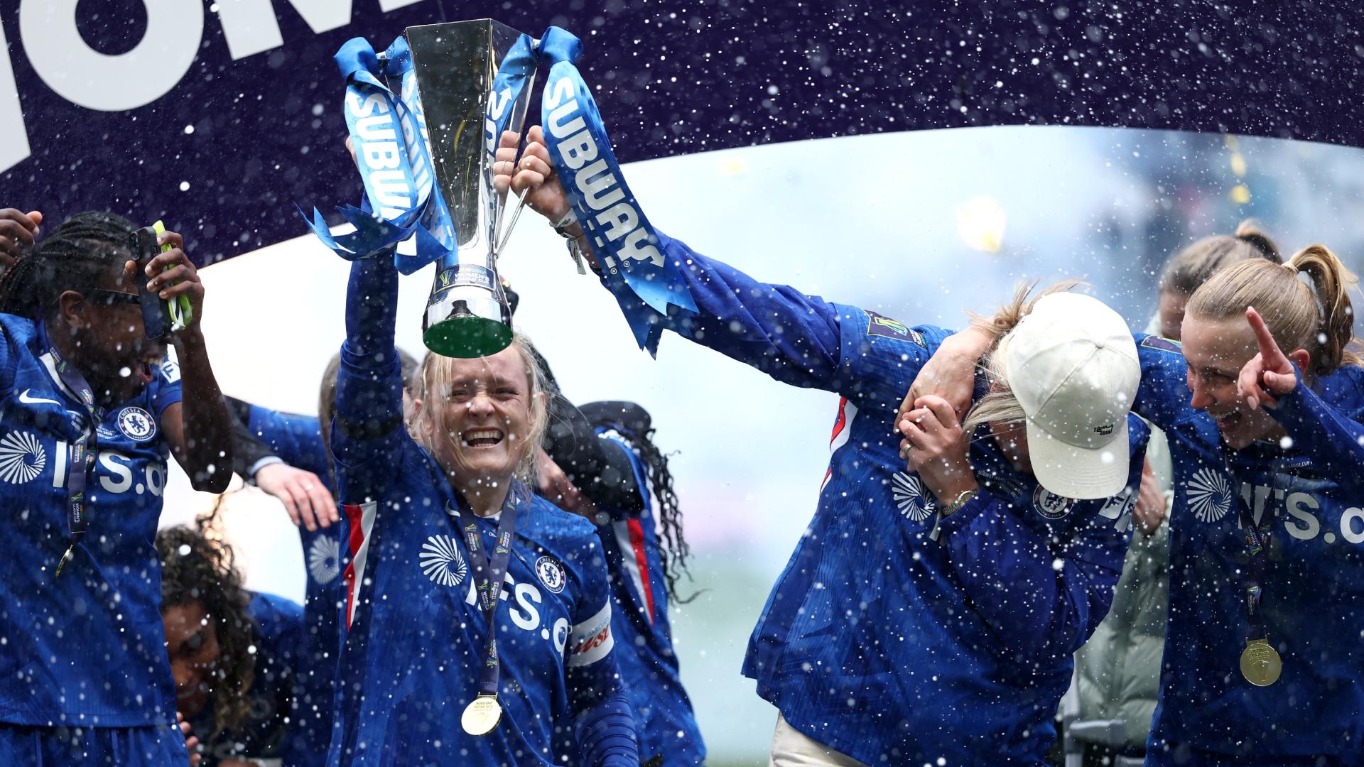 Lauren James and Aggie Beever-Jones score to give Chelsea a 2-0 win over Man United the Women's League Cup final.