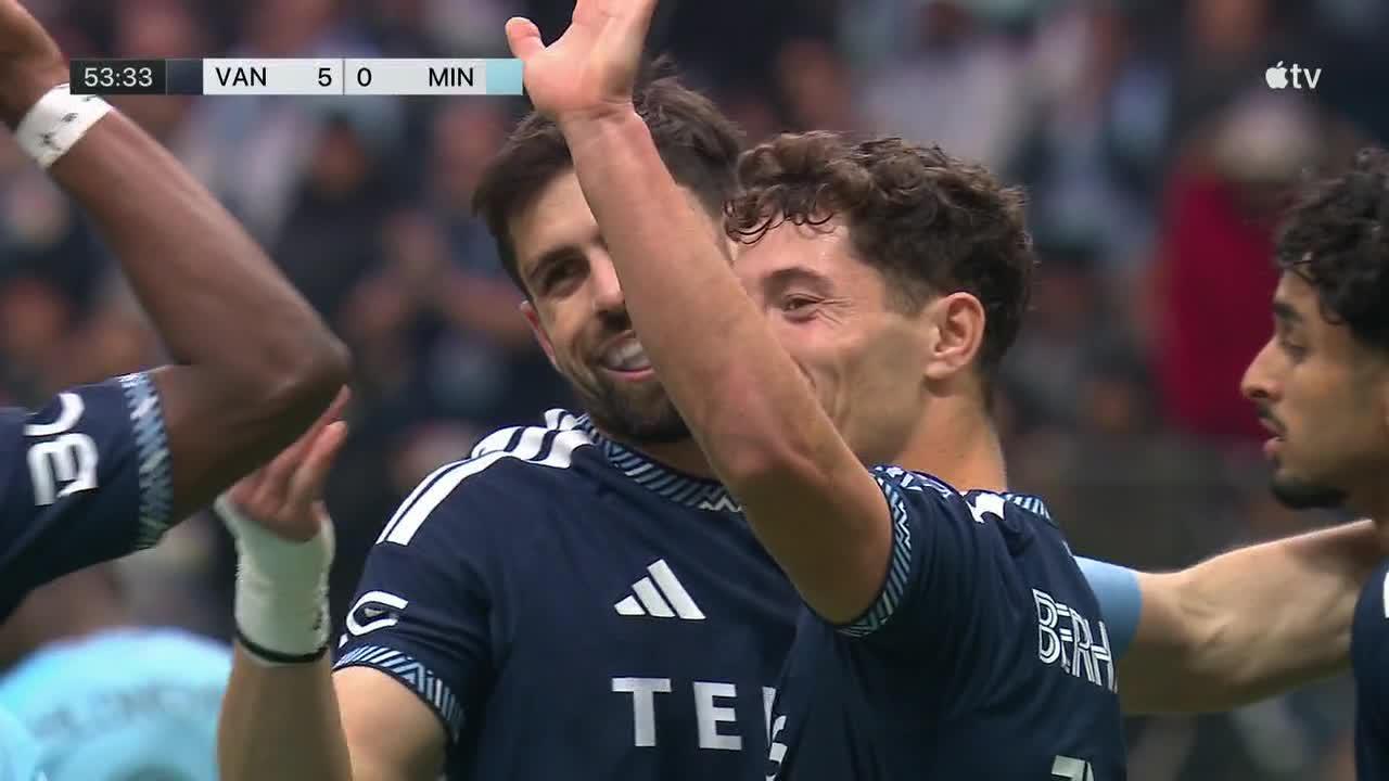 Brian White scored two goals for the second consecutive game and Sebastian Berhalter opened the scoring with a penalty kick in the eighth minute and added two assists, as the Vancouver Whitecaps beat Minnesota United 6-0 on Sunday.