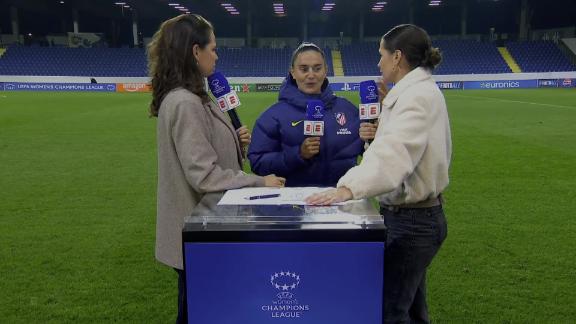 Vilde Bøe Risa speaks after scoring in Atletico Madrid's 6-0 win against St. Pölten in the Women's Champions League.