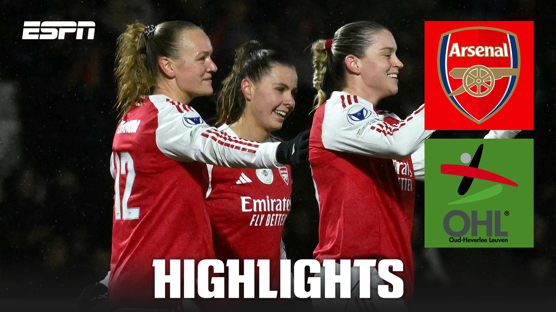 Arsenal defeat OH Leuven 7-1 on aggregate to set up a Women's Champions League quarterfinal tie vs. Chelsea.