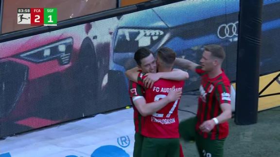 Michael Gregoritsch buries it in the net to give FC Augsburg a 2-1 lead.
